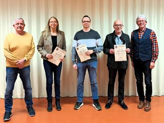 V.l. 1. Vorsitzender Eberhard Scholz, Anja Schäfer-Dietrich, Stefan Meinecke, Gerhard Urbasik und 2. Vorsitzender Uli Seibel