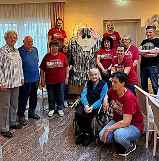Jeden Dienstagabend von 17 bis 19 Uhr heißt es im Betreuten Wohnen des Seniorenheims "Zum Schönbachtal" in Werdorf unter dem fröhlichen Motto "Komme, was Wolle - Wir schaf-en das!" auf die Wolle fertig los. In der Handarbeitsgruppe "Die Wolllüstigen" kommen hier kreative Köpfe zusammen, um gemeinsam zu häkeln und zu stricken. Die Gruppe besteht aus elf engagierten Mitarbeitern, zwei Bewohnern und Angehörigen, die seit Oktober 2023 regelmäßig zusammenarbeiten. Immer wieder finden sich neue „Wolllüstige“ ein, die ihre Leidenschaft für das Handarbeiten teilen. In den wöchentlichen Treffen entstehen zahlreiche kreative Projekte, darunter Weihnachtsbaum-Anhänger, Weihnachtsbäume aus Quadraten, gehäkelte Osterhasen-Anhänger, wunderschöne Rosen und kleine Mexikaner. Die Wolllüstigen, das sind Anne, Silvia, Johanna, Constanze, Jutta, Corinna, Sabine, Ina, Gabi, Hannelore, Gül, Heike, Valentina, Mathilde und Horst, sowie die Angehörigen Angelina und Lilli. Das größte Projekt, das die Gruppe ins Leben gerufen hat, ist ein beeindruckendes Schaf, das seit 14. Juni 2024 in Arbeit ist. Beim "wolligen" Engagement für das 50-jährige Jubiläum des beliebten Seniorenheims war die Idee entstanden und im Rahmen des Empfanges zur diesjährigen Osterausstellung wurde das besondere Kunstwerk im Café Schönbachtal präsentiert, wo es ab sofort bestaunt werden kann. Schreinermeister Ulrich Eckhardt, der sich im mannigfach engagiert, hat das nötige Holzgerüst gefertigt und spendiert und ist von der Idee begeistert. Ihm galt der Dank aller für die Unterstützung beim Gelingen des wollig-gemütlichen Projekts. Körper und Kopf des Schafs sind liebevoll umhäkelt, während die Beine von Ulrich Eckhardt mit seinem Sohn Felix entworfen und von einem Bewohner mit Leinöl behandelt wurde. Die mehr als 2000 Locken, die dem Schaf seinen einzigartigen Charme verleihen, sind in den letzten sieben Monaten entstanden und wurden in einem kreativen Prozess angenäht. Es darf nachgezählt werden! Die Wollüstigen freuen sich auf jeden, der vorbei kommt, um es zu bestaunen. Ein herzliches Dankeschön ging an alle Mitwirkenden - Mitarbeiter, Bewohner und Angehörige - sowie an die zahlreichen Wollspender, die das tolle Wolle-Projekt unterstützten. Wer gerne noch Wolle spenden möchte, kann diese gerne in der Sozialen Betreuung abgeben. Darüber hinaus wird die Gruppe auch einen Stand auf dem Frühlings- und Weihnachtsmarkt im Schönbachtal haben, wo die kreativen Arbeiten der "Wolllüstigen" präsentiert werden. Bei der Frühjahrs- und Osterausstellung am Wochenende fand das Schäfchen im Schönbachtal bereits großen Anklang. Die Wollüstigen freuen sich auf noch viele kreative Projekte im Schönbachtal.
