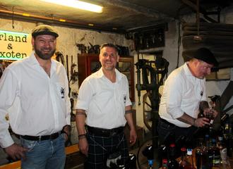 Am Samstagabend war es wieder soweit: Bereits zum 12. Mal fand im frisch renovierten Schlossmuseum in Werdorf die Museums- und Whiskynacht statt, die wieder ihre ganz eigene Atmosphäre mit sich brachte. "Werdorf Castle" kann da mit seinem herrschaftlichen Ambiente locker mit einem seiner schottischen Verwandten mithalten. Wenn so langsam die Nacht hereinbricht und die Lichter angehen, kann man sich hier fühlen, als wäre man bei einem der Adligen in den Highlands der grünen Insel zu Gast. Die Whiskyfreunde im Verein für Heimatgeschichte haben als Veranstalter aber auch ein feines Händchen dafür, es an nichts fehlen zu lassen. Mehr als 50 offene Whiskys aus vier schottischen Whiskyregionen galt es zu probieren und mit dem "Nosing-Glas" um den Hals machten sich mehrere Hundert Gäste auf die Rundreise durch das Land der Legenden um tapfere Männer, schöne Frauen, grässliche Ungeheuer und unbeugsame Clans, die den rauen Naturgewalten trotzen. Zum Teil hatten sie sich von weit über die Region hinaus auf den Weg ins "Hoingkerland" gemacht, sich in Kilts, Tweedanzüge und Herringbone-Barronmütze gewandet, und genossen den Abend der herrlichen Genüsse. Alle Hast und Eile wurden abgestreift, der laue Frühlingsabend ließ gerne im Schlosshof verweilen und in Gesellschaft vieler Gleichgesinnter das entspannte Miteinander spüren. Im Schloss selbst gab es dieses Mal nur einen Ausschank in der Sängerstube, wo "Highland und Campbeltown" im Fokus standen. Und nicht nur hier waren die Geschmacksbeschreibungen beinahe poetisch. Der Longrow Peated zum Beispiel wird als reich und cremig mit leicht medizinischen Noten beschrieben - der Rauch ist die ganze Zeit präsent, wäscht in feinen Wellen über den Gaumen, wie die sanften Rauchschaden des Ofens. Dabei sollte man sich merken: Nie mit einem rauchigen Whisky eine Verkostung beginnen, weil sich eine feine rauchige Note dauerhaft auf den Geschmacksknospen hält. "Craigellachie", "Glenglassaugh" oder "Bunnahabhain" - die zum Teil schwer auszusprechenden Namen fallen mit dem Genuss der hochprozentigen Spirituosen immer leichter und auch das Herausschmecken der Aromen wie vollreifer Pfirsich, cremige Vanille, kandierte Orange, Kirschsirup, Biskuit, Ananas oder Honig wird mit der Zeit einfacher. Alle Sinne kommen zum Einsatz, werden freier und öffnen sich der großen Vielfalt. In der Scheune waren "Islay und die Inseln" vertreten und zwischen Mähdrescher, Fäägmeel und sonstigem altertümlichen Gerät, war es wie in einem Zeitsprung um viele Jahrzehnte. Gemütlich wurde geschwatzt und gefachsimpelt und mancher wäre sicher auch gerne auf die Tenne für ein Schläfchen. Urig ist es immer in der alten Schmiede, wo irische und mehrere internationale Whiskyregionen ihre Freunde fanden. Die Lowlands und Speyside forderten einen Aufstieg in den Hohenlohe-Saal, von wo aus man auch einen schönen Blick auf das bunte Gewimmel im Schlosshof hatte. Dort war es in diesem Jahr die Band "Double Stroke", die für die passenden Klänge sorgte. Oliver und Christian Stöhr hatten von Bohemian Rhapsody bis "Whisky in the jar", "Proud mary" und "Those were the days" ein breites Repertoire zu bieten. Im Schlosskeller-Pub gab es Guiness, Cider und alle Hände voll zu tun und vom dem Dorfplatz lockte der Duft von Bratwurst, Gyros sowie Fish and Chips und fast hätte man in dem emsigen Treiben "Molly Malone" mit ihrem Fischkarren erwartet. Natürlich standen auch die Ausstellungsräume zur Verfügung, in denen sich eine Menge getan hat. Hier kann man sich ab dem 28. April zwischen 14 bis 18 Uhr fortan wieder jeden 2. und 4. Sonntag im Monat ein Bild von der heimischen Historie machen. Zu den vielen positiven Seiten dieses beliebten Festes gehörte auch eine Benefiz-Aktion, die gerne unterstützt wurde: An der Ausgabe der Nosinggläser konnten diese und auch die Guiness-Gläser zurück gegeben und der Pfand gespendet werden. Die hoffentlich große Summe geht an den Verein "Menschen für Kinder", der sich rührig, unbürokratisch und mit viel Herz für krebskranke Kinder engagiert.