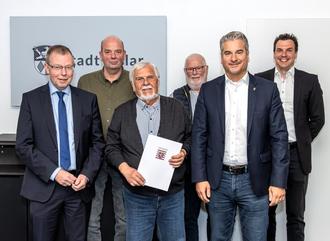 Am Mittwochvormittag hat Dr. Achim Lauber-Nöll, Direktor des Amtsgerichts in Wetzlar, im Rathaus den Orsgerichtsschöffen Walter Klos für 60 Jahre Tätigkeit im öffentlichen Dienst geehrt. "Walter Klos hat mit großer Schaffenskraft und Engagement zunächst beruflich bei der Sparkasse und später ehrenamtlich am Ortsgericht gearbeitet", so Lauber-Nöll und ging noch einmal auf das Kuriosum ein, dass Klos vor zwei Jahren erst für 50 Jahre geehrt worden war. "Wenn jemand eine ehrenamtliche Tätigkeit beginnt, wird bei uns eine Dienstzeitberechnung für die Jubiläen durchgeführt, wobei übersehen wurde, dass Herr Klos seit dem 1. April 1964 bei der Sparkasse und somit bis 2011 im öffentlichen Dienst beschäftigt war, was auch dazu zählt." Da Walter Klos seit dem 24. Juli 1997 für das Ortsgericht tätig ist, hätte 2022 das 25-jährige Jubiläum angestanden, wobei der Fehler auffiel. So wurde umgehend die Urkunde für das 50-Jährige verliehen. So ist Walter Klos mittlerweile seit 27 Jahre als Schöffe am Ortsgericht Aßlar II (Berghausen/ Werdorf) tätig. Lauber-Nöll verglich die Lebensumstände der Menschen in den 1960-er Jahren mit der heutigen Zeit, um den Bogen der langen Jahrzehnte zu schlagen, der von der Nachkriegszeit bis in das digitalisierte Zeitalter reicht: "Es gibt auch heute noch viele Krisenherde, aber die Menschen sind ganz anders eingestellt als damals." Es sei keine Selbstverständlichkeit, dass jemand so lange eine Tätigkeit ausübt, die nicht immer einfach ist und bei der nicht immer Zufriedenheit mit einer Entscheidung besteht. Betont wurde auch, dass es Ortsgerichte ausschließlich in Hessen gibt, wo sie als Hilfsbehörden der Justiz gelten, die durch Landesgesetz errichtet sind. "Die Arbeit im Ortsgericht ist viel mehr als nur Schätzungen - es geht auch um Unterschriften für Beglaubigungen, Nachlässe, Vorsorgevollmacht und Patientenverfügung und Beratung der Bürger, wobei die Gebühren dafür eher symbolisch sind", erklärte der Jurist. Zum Vergleich kostet die Arbeit bei einem Sachverständigen meist etwa das 10-fache im Gegensatz zu der ehrenamtlichen Arbeit im Ortsgericht. Dafür wird den Mitbürgern mit Toleranz und Verbindlichkeit begegnet, was Ausdruck hohen Verantwortungsbewusstseins und Solidarität ist. "Ich danke allen Ortsgerichten für ihre tolle Arbeit in Zeiten, wo das Ehrenamt immer schwieriger wird", so Bürgermeister Christian Schwarz. Walter Klos dankte er vor allem für die sehr lange Zeitspanne seines Engagements. "Das ist gelebte Demokratie, die nur funktioniert, wenn sie von den Wurzeln ausgeht." Ortsgerichtsvorsteher Ulrich Hahn warf einen Blick zurück: "Ich wurde 1997 ernannt und kenne Walter Klos schon seit meiner Jugend." Auch er verglich damals mit heute: " Früher gab es in über einen langen Zeitraum maximal zwei Erbausschlagungen - heute sind es manchmal zwei pro Monat." Hahn freut sich, den Menschen diesen Dienst anbieten zu können, der trotz vieler Veränderungen seinen Stellenwert nicht verliert. "Mein großes Vorbild ist Otto Fischer, der damals direkt nach dem Krieg den Menschen eine große Hilfe war", so Hahn und berichtete von vielen Hausschätzungen, die Streitigkeiten minimieren.