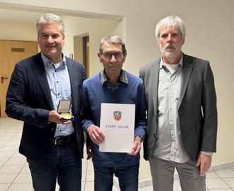 Mit der diesjährigen Jahreshauptversammlung der Deutsch-Französischen Gesellschaft Aßlar, ging eine Ära zu Ende: Günter Stühler wurde nach 40-jähriger Tätigkeit aus den Reihen des Vorstands verabschiedet. Grund genug für Bürgermeister Christian Schwarz, ihm für die Verdienste um das Ehrenamt und insbesondere für die Verdienste um die Aufrechterhaltung der städtepartnerschaftlichen Verbindungen über so viele Jahrzehnte, die Ehrenmedaille der Stadt Aßlar in Gold zu überreichen. "Günter hat unzählige Male im Rahmen von Städtepartnertreffen die Übersetzungen auf der Bühne von den deutschen oder französischen Offiziellen in seiner ruhigen und besonnen Art und Weise durchgeführt, sodass ohne seine Unterstützung die Verständigung zwischen den Menschen viel schwieriger gewesen wäre", so Schwarz. "Günter Stühler hat natürlich lange vor meiner Vorstandstätigkeit, aktiv deutsch-französische Freundschaft gelebt und dabei Zeichen gesetzt", so der 1. Vorsitzende Olaf Uhl. Seit 1980 war Günter Stühler als Beisitzer und Schriftführer tätig, seit 1988 im geschäftsführenden Vorstand und seit 2001 als 2. Vorsitzender. "Wir durften gemeinsam viele Veranstaltungen, Tagesfahrten, Mehrtagesfahrten, Partnerschaftsveranstaltungen und Jubiläen organisieren. "Ich habe die konstruktive und harmonische Zusammenarbeit mit Günter sehr geschätzt und ich denke, unsere Vereinsmitglieder haben ebenfalls davon profitiert. Günter war und bleibt eine prägende Gestalt der DFG Aßlar. Dank seiner großen Sprachkompetenz war Günter stets ein gefragter Dolmetscher. Viele offizielle Veranstaltungen hat er im Auftrag der Stadt in Wort und Schrift unterstützt und nicht zuletzt damit zur positiven Außendarstellung unseres Vereins beigetragen. Günter verbindet bis heute eine langjährige Freundschaft mit unseren französischen Partnern, insbesondere mit dem ehemaligen Bürgermeister von Saint-Ambroix, Marcel Tronc. Man kennt Günter Stühler - sei es in Aßlar, Saint-Ambroix, Fossato di Vico oder Jüterbog! Sein Wirken für die deutsch-französische Freundschaft wurde bereits vor längerer Zeit auch über die Grenzen unseres Vereins erkannt und gewürdigt. So ist Günter Ehrenbürger von Saint-Ambroix und der Ehrenbrief des Landes Hessen wurde im verliehen. Wir sind Günter zu großem Dank verpflichtet. Er hat die Ideale unser Vereins in hervorragender Weise vertreten - stets mit der ihm eigenen Bescheidenheit und Sachlichkeit. Die genannten Ehrungen können wir nicht überbieten, aber unser Vorstand hat einstimmig entschieden, Günter Stühler, in Anerkennung seiner Verdienste zum Ehrenmitglied der Deutsch-Französischen Gesellschaft zu ernennen", so Uhl in seiner Laudatio. Der neue Vorstand wurde aus den Reihen der bisherigen Mitglieder umbesetzt: 1. Vorsitzender Olaf Uhl, Schatzmeister Wolfgang Rumpf, 1. Schriftführerin Pia Becker und die Beisitzer*innen Sylvie Guillou, Matthias Pachler und Petra Schneider wurden wiedergewählt. Die bisherige 2. Schriftführerin Tanja Guckelsberger-Pingel wurde zur neuen 2. Vorsitzenden gewählt und die bisherige Beisitzerin Brigitte Boeder fungiert ab sofort als 2. Schriftführerin. Aus dem Vorstand ausgeschieden ist auch Donathe Neuhaus-Müller. Höhepunkte des Jahresrückblicks des Vorsitzenden waren neben Ausstellungsbesuchen das gemeinsam mit allen Partnerschaftsvereinen erlebte Stadtfest und die Fahrt zu den "Automnales" in Saint Ambroix. In diesem Jahr steht am 27. April eine Tagesfahrt nach Speyer ebenso auf dem Plan, wie eine Ausstellungsfahrt in das Kölner Wallraf-Richartz-Museum in Köln am 25. Mai, eine historische Stadtführung in Aßlar mit Jürgen Scheiter und eine Mehrtagesfahrt nach Nordfrankreich vom 10. bis 14. Oktober.