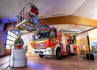 Am Mittwochnachmittag hatte Aßlars Feuerwehr hohen Besuch: Hessens Innenminister Prof. Dr. Roman Poseck kam persönlich zur Indienststellung der neuen Drehleiter (DLAK 23/12) ins Feuerwehrhaus, wo er von einem große Gästeaufgebot erwartet wurde, das vom ersten Kreisbeigeordneten Roland Esch, über Bürgermeister Christian Schwarz und Stadtverordnetenvorsteherin Katharina Schäfer, bis zu weiteren Gästen aus Politik und Gefahrenabwehr reichte. Stadtbrandinspektor Michael Pichl hieß alle im Kreise der Wehrleute willkommen und gab ein Resümee zu den Hintergrünen der Beschaffung. Bereits in 2020 war diese auf den Weg gebracht worden, nach einer europaweiten Ausschreibung wurde der Auftrag an die Firma Rosenbauer in Karlsruhe vergeben und im Januar 2024 wurde das Fahrzeug abgeholt. "Dies ist ein wichtiger Schritt für die Sicherheit der Bevölkerung und es wurde gleichzeitig in eine zukunftssichere Feuerwehr investiert", so Pichl. Mit 915000 Euro Kosten an denen sich das Land Hessen mit 186000 Euro beteiligt, ist das bisher teuerste Fahrzeug im Aßlarer Feuerwehrfuhrpark, ist allerdings auch deutlich größer als die Vorgängerin aus dem Jahr 1994 und technisch auf dem neuesten Stand. Die Anforderungen an Effizienz und Sicherheit sind in 30 Jahren immens gestiegen - der Unterschied ist ein Quantensprung. Allein der Unterschied in der Arbeitshöhe von 23 zu zwölf Metern macht dies deutlich. Mehr Infos zu den Unterschieden findet man auf der Internetseite der Feuerwehr. "Bei schwierigen Einsätzen zählt jede Sekunde und damit muss es unser Ziel sein, auch bei unseren Fahrzeugen das Gerät vorzuhalten, dass bei den unterschiedlichsten Einsatzlagen unserer Feuerwehr nicht nur größtmögliche Effizienz und Schlagkraft, sondern gleichzeitig auch die höchstmögliche Sicherheit für unsere eingesetzten Kräfte ermöglicht", so Pichl. Fazit: Mit der neuen Technik - also mit weniger Personal und weniger Handgriffen - kann mehr Effizienz im Einsatz erreicht werden. "Wie wichtig nicht nur gut ausgebildete, sondern auch gut ausgerüstete Wehren für die Sicherheit unserer Bürgerinnen und Bürger ist, zeigen die vielen Einsätze, die unsere 5 Feuerwehren Jahr für Jahr abzuleisten haben", so Pichl, der den Gremien der Stadt Aßlar für die Bereitstellung der Mittel dankte. "Ich hoffe, dass das Fahrzeug möglichst wenig gefährliche Einsätze fahren muss, wenn es aber zum Einsatz kommt, wünsche ich, dass Mannschaft und Gerät möglichst alle Aufgaben unfallfrei und erfolgreich lösen können und sie in jedem Fall gesund ins Feuerwehrhaus zurückkehren mögen." Dies unterstrichen in der Folge Christian Schwarz, Katharina Schäfer, Roland Esch, der stellvertretende Kreisbrandinspektor Dirk Schumacher und der Verbandsvorsitzende Michael Stroh in ihren Grußworten. "Mit der Förderung der neuen Drehleiter haben wir als Land einen Beitrag zur Ausstattung der Freiwilligen Feuerwehr Aßlar geleistet, der die Rettung von Menschen erleichtert und verbessert", so der Innenminister. "Mit der neuen Drehleiter sind hervorragende Rahmenbedingungen geschaffen worden, die das Retten und Bergen von Menschenleben, gerade in großer Höhe, noch sicherer machen und zugleich die Arbeit der Feuerwehr erleichtern." Die Feuerwehr Aßlar sei fest in der Stadt verwurzelt und trage insbesondere mit dem ehrenamtlichen Engagement zu einem funktionierenden Gemeinwesen bei. "Ich danke allen Ehrenamtlichen, die sich so selbstlos für diese wichtige und herausfordernde Aufgabe des Brandschutzes engagieren: Sie sind Helden des Alltags“, so Poseck. Von dem neuen Rettungsgerät profitieren nicht nur die Aßlarer*innen, sondern auch die angrenzenden Kommunen, deren Feuerwehren keine eigene Drehleiter vorhalten. Bisher war auch Aßlar abhängig von den weiter entfernten Hubrettungsfahrzeug aus Wetzlar und Herborn. Am Sonntag eilten die Aßlarer Wehrleute den Kameraden aus Hohenahr zu Hilfe, wo in Mudersbach ein Wohnhaus ausbrannte. In Klein-Altenstädten konnte vor einigen Wochen ein Mann aus der oberen Etage eines Wohnhauses geborgen werden, der durch den Hausflur nicht zu transportieren war. Die Aßlarer können stolz und froh sein, dass die Freiwillige Feuerwehr einer Berufswehr in nichts nachsteht und die Mitbürger in ihren Reihen sich in vorbildlicher Weise für das Allgemeinwohl engagieren.