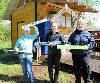Laura und David Heun, die in ihrem Gemüseanbaubetrieb 40 Familien jede Woche mit einer Kiste frischem Gemüse versorgen, waren schon selbst bei den 72 Stunden-Aktionen dabei, und wollten mal selbst Gastgeber sein. Ganz neu ist ihre Idee eines Lernbauernhofs, in dem 20 junge Leute an jedem ersten Samstag im Monat anderen zeigen, wie man Gemüse und Co. anbaut. Die Teilnehmer*innen der 72 Stunden-Aktion konnten bei ihrer Arbeit jede Menge Erfahrungen sammeln. Die Jugendlichen hatten freie Hand, wie sie die Arbeit aufteilten und angingen. Der Bienenfutterautomat vor dem Eingangstor war sehr schnell im Boden verankert. Hier können Spaziergänger und Besucher Saatkugeln entnehmen und in ihrem Garten bienenfreundliche aussäen. Auch der Infokasten war relativ schnell frei geschnitten. Die Hinweisschilder für das große Gelände der ehemaligen Gärtnerei gelangen schön bunt und sorgen jetzt für die Übersicht der Besucher. Beim Staudenbeet galt es, zunächst die obere Bodenschicht abzutragen, wobei vorhandene Stauden "gerettet" werden konnten. Die Entscheidung pro oder contra eines Aroniabaumes fiel für die sehr gesunden Früchte aus, die leckeren Saft, Marmeladen und Gelee ergeben. Das frei gelegte Erdreich sollte mit Kompost bedeckt und Stauden neu gepflanzt werden. Zum Abschluss eine Schicht Holzhäcksel sorgt für weniger Unkraut im Beet. Die härteste Nuss, die es zu knacken galt, war ein Baumstumpf im Staudenbeet, der sich hartnäckig weigerte zu weichen. Da war mit dem vorhandenen Werkzeug nichts zu machen - ein Papa griff schlussendlich maschinell unter die Arme. So konnte die Fläche zum guten Schluss dann doch noch mit Pfingstrosen, Schwertlilien, Lupinen, Beinwell, Fette Henne und mehr bepflanzt werden. "Die Welt ein Stückchen besser machen" - dieses Motto hatten die Aktionisten auf jeden Fall bestens umgesetzt. Von dem Ergebnis können sich am 4. Mai von 11 bis 17 Uhr die Besucher des Jungpflanzenmarktes beim "jungen Gemüse" im Werdorfer Mühlweg, ein Bild machen. Man kann sich aus einer großen Auswahl an Jungpflanzen aus samenfestem Bio-Saatgut versorgen, gemütlich durch die Gärtnerei schlendern und Gemüsewaffeln und Kaffee genießen.