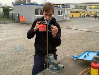 Das Handwerk live erleben, konnten nun auch interessierte Schülerinnen und Schüler der Johannes-Gutenberg-Schule der Klassen 9 und 10. Matthias Schneider, selbst Auszubildender zum Anlagenmechaniker für Sanitär-, Heizungs- und Klimatechnik und ausgebildeter Azubi-Guide, forderte im Rahmen des Projekts die teilnehmenden Schülerinnen und Schüler auf, selbst ein Werkstück herzustellen.