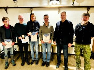 Die Sportlerehrung im Rahmen der Jahresabschlussfeier der Leichtathletik-Gemeinschaft Aßlar-Werdorf hat schon gute Tradition, die bisher nur durch die Corona-Pandemie unterbrochen wurde. Manfred Kloß von der LG Aßlar-Werdorf hieß dazu Bürgermeister Christian Schwarz willkommen. "Ich freue mich, dass viele Aßlarer Vereine nach der Pandemie wieder Fuß gefasst haben, sportliche Wettbewerbe stattfinden und städtische Ehrungen vorgenommen werden können", so Schwarz, der Susanne Lühring, Heiko Brattig, Anna Lühring und Achim Baroth eine Ehrenmedaille der Stadt Aßlar in Bronze für den jeweils in ihrer Altersklasse erreichten 1. Platz bei Waldlaufmeisterschaften Langstrecke überreichte.