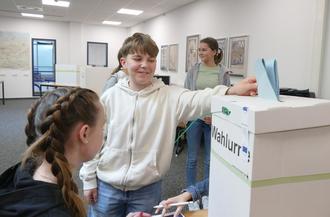 Die Schülerinnen und Schüler der Klassen 7 bis 10, die zur Wahlsimulation aufgerufen waren, hatten sich im Fach Politik und Wirtschaft auf den Gang zur Wahlurne vorbereitet. So wurde im Unterricht geklärt, welche Aufgaben das Europäische Parlament hat, wie sich EU-Kommission, Rat der EU und Europäischer Rat zusammensetzen und welche weiteren europäischen Institutionen es gibt. Dann ging es klassenweise ins „Wahllokal“ im Recherche- und Informationszentrum. Für den reibungslosen Ablauf bei der Stimmabgabe sorgte die Klasse 9G1 mit ihrem Lehrer Jonas Falk. Auch das Auszählen der Stimmen zählte zu den Aufgaben der Schüler.
