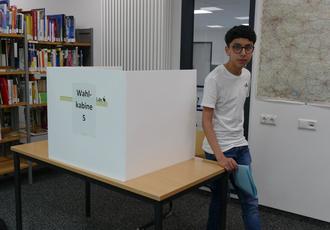 „Ich finde es auf jeden Fall wichtig, die Juniorwahl an der Schule durchzuführen, damit man später, wenn man wählen darf, mit den Abläufen vertraut ist“, so eine Schülerin vor ihrer Stimmabgabe.
