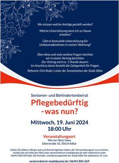 | 3 | Vortrag durch den Leiter der Sozialstation Herrn Dirk Bode über das Thema "Pflegebedürftig - was nun?" |