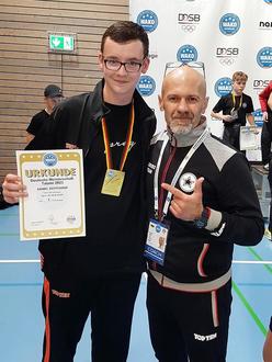Das Team der kukibo-Academy des Aßlarer Kickboxvereins reiste am 10. Juni mit dreizehn Athleten der Jugendmannschaft nach Lübeck, um an der diesjährigen Deutschen Meisterschaft teilzunehmen, die an zwei Tagen stattfand. Samstags traten alle Sportler unter 19 Jahren an - am Sonntag waren die Erwachsene an der Reihe. Insgesamt waren 93 Teams aus allen Bundesländern mit 458 Athleten und 591 Starts dabei. Die Mitglieder des Aßlarer Teams hatten sich bei den Qualifikationsturnieren hervorragend vorbereitet gezeigt und waren auch dieses Mal mit zweimal Gold, dreimal Silber und dreimal Bronze wieder sehr erfolgreich. Der frisch gebackene Hessenmeister Daniel Savtchouk startete in der Klasse Leichtkontakt +69 kg. Er marschierte durch und war in allen Belangen seinen Gegner haushoch überlegen. Er gewann den Finalkampf vorzeitig in der ersten Runde durch Aufgabe seines Gegners. Daniel gewann Gold und ist der Deutsche Meister 2023. Lilli Singer war wieder einmal der Höhepunkt der Aßlarer Mannschaft. Sie startete in zwei Kategorien, Pointfighting bis 60 kg und Leichtkontakt bis 60 kg. Lilli dominierte in der Leichtkontakt Kategorie ihre Gegner und gewann die Goldmedaille. In der Pointfighting Kategorie marschierte sie bis in das Finale und war erst in einem spannenden Endkampf mit nur einem Punkt Unterschied zu stoppen. Damit brachte sie die Silbermedaille mit nach Hause. In der Gewichtsklasse bis 47 kg gewann Ben Henrizi Bronze. In der Kategorie bis 50 kg schaffte es Mia Partisch die Bronzemedaille mit nach Hause zu nehmen. Kristina Vujovic startete in der Klasse bis 37 kg, knüpfte nahtlos an die bis jetzt erbrachte Leistungen an und war erst im Finale aufzuhalten: Sie gewann in der stark besetzten Kategorie Silber. Victoria Fabianski kämpfte in der Klasse bis 42 kg. Wieder einmal vollbrachte Victoria eine solide Leistung. Sie überzeugte alle Anwesenden von ihrer besonderen Leistung, gewann zwei Kämpfe, musste sich aber im Finalkampf geschlagen geben und kam auf Platz zwei. Leon Schmidt belegte in der Kategorie bis 42 kg Platz drei.