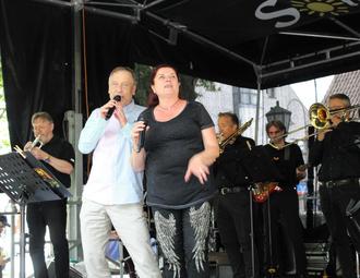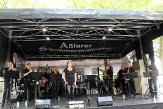 Mit den Swinging Telstars standen am Sonntag dreizehn hochmusikalische Menschen auf der Aßlarer Sommermatinee-Bühne, die sich in der Region einen hervorragenden Namen gemacht haben. Jazz und Swing sind ihr Metier und dass sie für ihre Musik brennen, merkt man schon beim ersten Akkord. Da herrscht familiäre Atmosphäre, strahlen die Gesichter und jedes Mal aufs Neue klingt kein Titel nach Routine, auch wenn er schon oft intoniert wurde. Da steckt Herzblut, Können und viel Liebe dahinter. Das Besondere an der Formation ist neben den erfahrenen Musikern das Gesangs-Trio: Christina Schütz, Claudia Koch und Norbert Wolf geben den beliebten Jazz-Klassikern und modernen Songs noch das gewisse Etwas, das die Zuhörer bis ins Innerste berührt. "Sitz' nicht alleine zu Hause, geh' hin wo die Musik spielt und erlebe das Cabaret des Lebens", forderte Christina Schütz beim ersten Stück mit Liza Minellis "Cabaret" und hatte das Publikum sofort im Griff - der Bogen war gespannt und eine Stunde lang lauschte alles gebannt und ging begeistert mit. Kein Lied, das nicht weltbekannt ist, stand auf der Setlist und es durfte in vollen Zügen genossen werden. Ob Frank Sinatras "Summerwind" und "Bad Leroy Brown", Sammy Davis jr. "Mr Bojangles", "I do" von ABBA, Udo Jürgen "Ich war noch niemals in N.Y.", Miriam Makebas "Pata Pata", Catarina Valentes "Quando, quando", das "Sweet home Chicago" der Blues Brothers, Dusty Springfields "Son of a preacher man" oder "Proud Mary" von CCR - jedes Stück eine runde Sache und am Liebsten hätten die Gäste noch stundenlang weiter zugehört. Doch mit Adeles "Skyfall" fand die Matinee einen fulminanten Abschluss und die Kultband um Volker Zimmerschied verabschiedete sich.