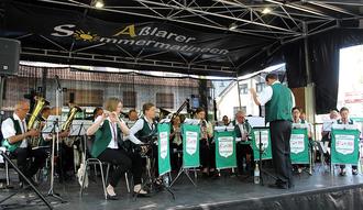 Das Blasorchester des Heimat- und Musikvereins Rechtenbach, das in diesem Jahr sein 50-jähriges Jubiläum feiert, war bei der jüngsten Ausgabe der beliebten Aßlarer Sommermatineen am Sonntag Garant für Blasmusik vom Feinsten und durchweg gute Laune. Der renommierte Klangkörper ist auch im Ausland bestens bekannt und in der HR „Landparty“ aufgetreten. Seit 2002 ist mit Guido Beilborn ein leidenschaftlicher Vollblutmusiker Dirigent des rund 40-köpfigen Ensembles - im Heeresmusikcorps 2 spielt er Posaune, Tuba und Fagott. Das Publikum konnte sich also auf erstklassige Musik freuen und wurde durch den Vereinsvorsitzenden Udo Watz begrüßt, der seine Kolleg*innen vorstellte und durch das abwechslungsreiche Programm führte. Zum Repertoire des Orchesters gehört neben volkstümlicher Musik nämlich auch Konzertantes und moderne Kompositionen. Mit dem „Patronatsmarsch“ von Maximilian Obermüller begrüßt, folgte ein Potpourri mit Melodien der Comedian Harmonists und die Musiker*innen ließen „Egerländer Dorfschwalben“ fliegen, besuchten das „Egerländer Musikantenfest“ und hatten natürlich auch Ernst Mosch und seinen „Egerländer Musikantenmarsch“ auf dem Plan. Schließlich wäre die Egerländer Musiklegende in diesem Jahr 100 Jahre alt geworden. Und natürlich durfte auch Franz Bummerl, ebenfalls ein Altmeister der Egerländer Klänge, nicht fehlen - er war gleich mit einem ganzen Potpourri vertreten. Weitere Highlights waren der traditionelle „Steigermarsch“ und natürlich Josef Poncars „Vogelwiese“. Längst war es dem Publikum nicht nur durch die sommerlichen Temperaturen warm geworden - man hatte sich auch warm geklatscht und mit der „Wir sind wir-Polka“ wurde die feste Gemeinschaft der Musikliebhaber dick unterstrichen. Am kommenden Sonntag sind es „The great Gatsbees“, die ab 11 Uhr auf dem Aßlarer Backhausplatz in die wilden 1920-er Jahre entführen.