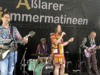 Die jüngste Sonntagsmatinee bewies: Es muss nicht immer Blasmusik sein, wenn der Aßlarer Backhausplatz voller vergnügter Menschen sitzt, die das musikalische Angebot genießen. "Erna und ihre Berts" waren angesagt und Schlager der 1960-er und 70-er Jahre rissen das Publikum vom Hocker. Bei der flotten Schlagerreise wurden Erinnerungen an Schlaghosen, Prilblumen und die ZDF-Hitparade wach und der Spaß an dieser Kultmusik, den die Gießener Combo versprühte, steckte alle an. Das Programm wurde "Aber bitte mit Sahne!" serviert und bot all die Titel, die man bis heute im Radio lauter dreht und lauthals mitsingt. Juliane Werdings "Conny Kramer" (1972) und Costa Cordalis "Anita (1976) mussten ebenso sein wie "Du kannst nicht immer 17 sein" (1974), Gittes "Ich will 'nen Cowboy als Mann" (1963) oder Jürgen Marcus' "Eine neue Liebe" (1972). Christian Anders "Zug nach Nirgendwo" (1972) fuhr über den Platz, mit Trude Herr wurde versichert "Ich will keine Schokolade" (1960), Jürgen Drews "Bett im Kornfeld" (1976) aufgeschlagen und mit Rex Gildo "Fiesta Mexicana" (1972) gefeiert. Marianne Rosenbergs "Er gehört zu mir" (1976) war natürlich ebenso ein Muss wie Michael Holms "Mendocino" (1969) und auch der Rest der insgesamt 20 Titel erinnerte an sorglose Zeiten, in denen nach dem Motto "Nach dem Bade Hitparade" samstags Dieter-Thomas Heck und seiner tollen Show aus dem Berliner Sendesaal entgegen gefiebert wurde. Dass dabei auch Sieger beim Eurovision Songcontest hervor gingen stellte Nicoles "Ein bisschen Frieden" (1982) unter Beweis, mit dem der bunte Reigen zu Ende ging. Fazit: Diese Schlager-Combo darf gerne wieder kommen!