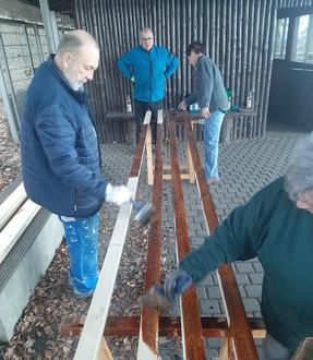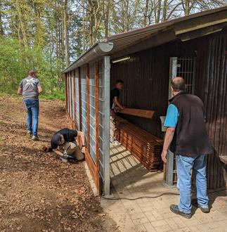Bisher wurde vom Vereinsvorsitzenden Ingo Reeh für fast jede Veranstaltung der Stromgenerator mit Benzin und schwerer Wetterschutzplane zur Hütte transportiert und anderntags wieder abgeholt. Jetzt wurde ein Anbau zur Lagerung von Gerätschaften geschaffen, der eine enorme Arbeitserleichterung bringt. Nachdem der Bauhof der Stadt das Fundament gelegt hatte, wurde ein Stahlgitter-Anbau mit Holzverkleidung gefertigt. Des Weiteren wurde die marode Eingangstür zum Innenraum ersetzt und stabil verankert. Außerdem wurden Bodenfläche und Umrandung des großen Grills durch einen massiven Edelstahleinsatz ersetzt. Die Umrüstung der Beleuchtung in und außerhalb der Hütte auf Strom sparende LED-Leuchtmittel erfolgt zeitnah. Bei den Arbeitseinsätzen der Vereinsmitglieder gab es mit Luca Bender und Leonard Becht auch zwei junge, fleißige Helfer, die eifrig mit anpackten. Beim Treffen mit Bürgermeister Christian Schwarz vor Ort gab es großes Lob für das Engagement des Verschönerungsvereins, der mit seinen Veranstaltungen fest im Dorf verankert ist und mit der Grillhütte für das Allgemeinwohl eintritt. Magistrat und Ortsbeirat um Ortsvorsteher Lars Becker danken den Aktivisten für ihr beispielhaftes Tun.