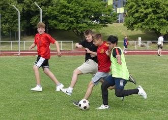 Das diesjährige Fußballturnier des Jahrgangs 8 der Alexander-von-Humboldt-Schule Aßlar fand bei wechselhaftem Wetter im Stadion unterhalb der Schule statt. Mädchen und Jungen spielten jeweils eigene Wettbewerbe aus, wobei die Teams auch klassenübergreifend gebildet werden durften. So waren bei den Jungen 6 und bei den Mädchen 7 Mannschaften mit je 6 Feldspielern und einem Torwart am Start. Zunächst wurde in zwei Gruppen nach dem Prinzip „Jeder gegen jeden“ gespielt. Dann folgten die Spiele um die Plätze, bei denen mit großem Einsatz gekämpft wurde.