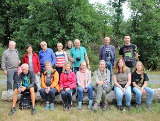Manfred Killmer (li) und Walter Veit (stehend 2.v.r.) mit den Wanderern, die wieder eine Menge seltene Arten kennen lernen konnten.