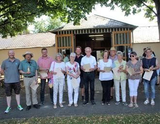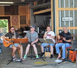 Im Rahmen des Sommerfestes, zu dem sich der Verein für Heimatgeschichte Werdorf am Sonntag traf, zeichnete der Vorsitzende Alexander Kleber langjährige Mitglieder. Er konnte vor der urigen Scheune mehr als 100 Mitglieder aus allen Generationen begrüßen, die einen gemütlichen Nachmittag genossen. Für 25 Jahre Mitgliedschaft im Verein für Heimatgeschichte 1980 Werdorf konnten Rosi Bernhardt, Birgit Jung, Margit Brühl, Hans-Dieter Koch und Klaus Bernhard geehrt werden, Jens Peusch, Helga Peusch, Petra Arning und Günter Cunz können ebenfalls auf 25 Jahre zurück blicken. Seit 40 Jahren gehören dem Verein Elli Burk, Dr. Marion Reuschling, Ulrich Eckhardt, Christel Menz, Dieter Schnürch, Minna Küster, Hildegard Engelhardt, Klasina Willeck, Walter Pfeffer, Manfred Küster, Friedhelm Schaub und Brigitte Lotz dem Verein an. "Wir haben eine tolle Vereinsgemeinschaft und haben uns bei der 1250-Jahrfeier sehr gut präsentiert", freute sich Kleber, der die Ehrung zusammen mit seinem Stellvertreter und "Ortsbabbe" Birger Hahn vornahm. "Wir haben mehr als 350 Mitglieder, sind breit aufgestellt und ich danke auch dem Vorstand, der mit großem Engagement bei der Sache ist." Dank ging auch an die "Gaasdebeck", die Kleber als beste Mundartband im unteren Dilltal lobte. Denis Brück, Birger Hahn, Oliver Krämer und Jochen Rau gaben Lieder der legendären Gruppe Fäägmeel zum Besten und gaben den Fest einen gemütlichen Anstrich.