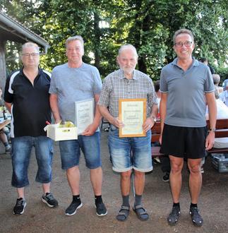 Ingo Reeh (li) und Lars Becker (re) mit den Geehrten Frank Töppel und Armin Gombel (v.l.).