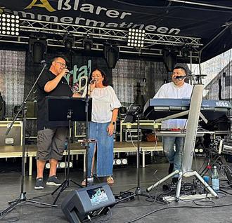 Saftige Burger, starke Musik und soziales Engagement standen am Samstag im Fokus des Burgerfestes, zu dem die Aßlarer Bürgerstiftung erstmals auf den Backhausplatz eingeladen hatte. Die große Resonanz der Aßlarer aller Generationen unterstrich, dass die Aßlarer gerne zusammen feiern und etwas Gutes tun. So wurde der Platz mit strahlendem Sonnenschein und einer mitreißenden Atmosphäre zum Zentrum für Gemeinschaft, Genuss und Lebensfreude. "Das quicklebendige Sommerfest bewies einmal mehr die Stärke des sozialen Miteinanders und das lebendige Herz unserer Stadt", freute sich Bürgermeister Christian Schwarz zusammen mit dem Team der Bürgerstiftung um Vorsitzenden Roland Esch. Von Beginn an war die Stimmung auf dem Backhausplatz und in den umliegenden Straßen geprägt von positiver Energie und einem fröhlichen Miteinander. Familien, Freunde und Nachbarn kamen zusammen, um gemeinsam den Tag zu genießen - ein wahres Fest der Begegnung. Die herzliche und ausgelassene Atmosphäre zeigte die enge Verbundenheit der Bürger*innen - pure Lebensfreude stand im Mittelpunkt des Geschehens. Bei freiem Eintritt verliehen gleich zwei musikalische Höhepunkte dem Fest einen besonderen Glanz: Das "Aartal Duo" verwöhnte zum Auftakt mit Klassikern und versetzte das Publikum in Erinnerungen, während die beliebte Band "MANDOWAR“ am Abend mit kraftvollen Rhythmen die Aßlarer City zum Beben brachte. Ihre mitreißenden Darbietungen waren ein lebendiger Beweis für die Freude an der Musik und das gemeinsame Erleben. Seit 2010 sind Sänger Nils Hofmann und seine Mannen aus Wetzlar von Wacken bis zur kleinsten Kneipe unterwegs und bleiben ihrem Erfolgskonzept treu: Coverhits mit Mandoline, Bass-Ukulele und Gitarre. Kleine Instrumente - große Songs - großer Spaß. Aus Metal und Rock wird Country, Polka, Hillbilly, Bluegrass oder Folk. Auch Schlagerzitate dürfen sein. Eine Band, die viel hessischen Humor mitbringt, aber Originalen stets mit großem Respekt. Das klangstarke Trio brachte auch am Samstag jede Menge Spaß. Ein Zeichen für solidarisches Engagement setzte die Veranstaltung mit einem Euro pro Burger, der an die Aßlarer Bürgerstiftung ging, die sich seit 2006 für Bildung, Jugend, Kultur, Umwelt und lokale Projekte stark macht. Leider waren zeitweise lange Warteschlangen am Burgerstand zu verzeichnen. Der Burgerhunger der Besucher war riesig, dem war der professionelle Caterer leider nicht gewachsen. Dennoch waren die Gäste verständnisvoll, hatten Geduld und sorgten dann eben bei den örtlichen Gastronomen und Imbissbetreibern in der Stadtmitte für einen regen Umsatz an diesem Tag. Es zeigte sich also, dass Aßlar eine solche Veranstaltung gerne annimmt und wenn die Bürgerstiftung im kommenden Jahr ihren 20. Geburtstag feiert, wird ein solches Fest garantiert wieder steigen.