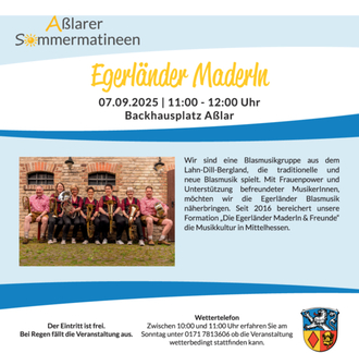 Wir sind eine Blasmusikgruppe aus dem Lahn-Dill-Bergland, die traditionelle und neue Blasmusik spielt. Mit Frauenpower und Unterstützung befreundeter MusikerInnen, möchten wir die Egerländer Blasmusik näherbringen. Seit 2016 bereichert unsere Formation „Die Egerländer Maderln & Freunde“ die Musikkultur in Mittelhessen.