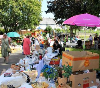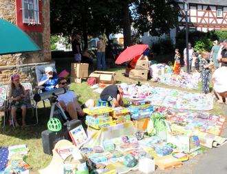 Zum Tag des offenen Denkmals, den die Deutsche Stiftung Denkmalschutz seit 1994 alljährlich aufruft, veranstaltete der Verein für Heimatgeschichte Werdorf seinen 1. Schlossfest-Flohmarkt, an dem 25 erwachsene Teilnehmer und elf Kinderstände verzeichnet werden konnten. Dabei ging es im Schlosspark fünf Stunden hoch her, das Heimatmuseum im Schloss war sehr gut frequentiert und der Verein selbst, der bisher im Nebengebäude einen Dauerflohmarkt betrieben hat, stellte seine neue "Stöberstube" in der Remise vor. Isabel Kleber und Markus Nehmer hatten den bunten Markt der Möglichkeiten organisiert, der das Schloss zu einem sehr lebendigen Denkmal machte. Die rührige Arbeit der "Schlossgeister" wurde dadurch ins rechte Rampenlicht gerückt und viele Flohmarktbesucher schauten sich auch das ganze Schloss an. Es gab Waffeln, Werdorfer "Ur-Bratwurst", in der Schmiede war Alexander Goerigk zu Gange und überall wurde nach Herzenslust gefeilscht, gestöbert, angeschaut und - das hervorragend geführte Museum bewundert. Das generationenübergreifende Team um Vorsitzenden Alexander Kleber konnte wieder einmal eine Glanzleistung präsentieren. So mancher museumsreifer Gegenstand wechselte den Besitzer und besonders für die Kinder war die Gelegenheit günstig, zu Hause Platz für Neues zu machen und das erlöste Geld günstig in neue Schätze zu investieren.