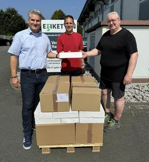 Im Gespräch mit Bürgermeister Christian Schwarz beim Bieranstich zum Kirmesfrühschoppen hatten Mitarbeiter der Firma TS-Etiketten eine sehr nützliche Idee. Bei der Produktion fällt regelmäßig eine Menge Papierreste an, mit deren Entsorgung im Müll keiner so recht zufrieden ist. Da könnte man doch noch etwas mit anfangen! Für den Betrieb, der für umweltfreundliche Produkte und Prozesse, Energieeffizienz durch Wärmerückgewinnung, LED-Technologie, verantwortungsvolle Waldwirtschaft und die Nutzung von Solarenergie steht, eine logische Schlussfolgerung. "Die Kinder in den Aßlarer Kitas brauchen doch immer Papier", wussten einige Familienväter und der Bürgermeister war sofort Feuer und Flamme. Michael Esser nahm die Sache in die Hand und am Donnerstag wurden zahlreiche Kartons übergeben, deren Inhalt für Erzieherinnen und Erzieher sicher wertvoll ist. "Ich bin begeistert von den tollen Ideen der Mitarbeiter - das nenne ich Bürgerengagement ganz nah dran", so Schwarz und freute sich über diese Materialquelle, die nicht versiegt und Nachhaltigkeit erlebbar macht.