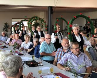 Der Verein zur Erhaltung der mittelhessischen Mundart und Kultur (VEMuK) und die Chorgemeinschaft Klein-Altenstädten hatten am Samstagnachmittag zu einem Mundartnachmittag in die Mehrzweckhalle Berghausen eingeladen, der allen Beteiligten augenscheinlich eine Menge Spaß machte. Ihr Versprechen im Vorfeld "Mir gäwwe alles!" konnten die Akteure dick unterstreichen und einen schönen Erfolg verbuchen. Beide Vereine präsentierten sich von ihrer besten Seite, der mittelhessische Dialekt wurde hervorragend in den Mittelpunkt gestellt und auch der Chorgesang zeigte mal eine ganz neue Seite der Unterhaltung: Es muss nicht immer ein Konzert sein. Fazit: Wenn man sich zusammen tut, kann man eine Menge bewegen. Friedhelm Cornelius, 1. Vorsitzender des VEMuK, und seine Kollegin von der Chorgemeinschaft, Ann-Christin Netsch, hielten sich mit ihrer Begrüßung denn auch kurz, wollte man doch keine Zeit verlieren. Heidi Diener und Heike Pöllmitz, aus der Aßlarer "Fassenoacht" als Mundart-Duo "Gerda un Marieche" bekannt, hatten sich ja auch schon über die gute Resonanz gefreut und die Freunde der "Plattschwätzer" herzlich willkommen geheißen. Die beiden "Schnerwelschnute" übernahmen nicht nur die Moderation, sondern mischten auch im Chor und solistisch mit. Seine helle Freude hatte Götz Konrad, der Vorsitzende des Landesverbandes MundART, der die Idee des gemeinsamen Engagements hervorragend fand. "Es ist wichtig, unsere Mundart zu erhalten und schön, wenn man erlebt, was so alles möglich ist!" Konrad erinnerte an die Urheberin des VEMuK und des Dachverbandes Marlit Hofmann, die ihre ganze Energie in den Erhalt des Dialekts und des rrrrollenden "R"s steckte. "S' Marlit deet sich freue!" Und auch Bürgermeister Christian Schwarz strahlte: "Wenn man über den Parkplatz kommt, wo gerade die Tanzgruppe 'Hoingker' aus Werdorf in ihren wunderschönen Trachten aussteigt und in einem Winkel schon die Gerda uns Marieche zu hören sind, dann weiß man, dass etwas Schönes auf einen zukommt!" Schwarz unterstrich auch die Wichtigkeit des rührigen Engagements nach der entbehrungsreichen Zeit der Corona-Pandemie, die sich momentan wieder überall bemerkbar macht. So wünschte er "en schiene Noachmiddoach" und machte die Bühne frei für den Chor, der unter anderem auch bekannte heimische Lieder wie "Sejsde net die Säu em Goarde" oder "Gieh mer net öwwer mei Äckerche" im Repertoire hatte, bei denen auch das Publikum gefordert war. Schön zu sehen, dass hier auch die jungen Leute, denen die Mundart nicht so geläufig ist, sich nicht verschlossen, sondern einfach mit machten. Chorleiter Peter-Ferdinand, der auch die Technik bediente, brachte das "R" wohl am meisten zum Rollen kommt er doch aus dem Nordkreis, wo dieser Zungenschlag noch am meisten zu hören ist. Friedhelm Cornelius hatte Gedichte einiger VEMuK-Mitglieder mitgebracht, wie Karl-Paul Kortz aus Tiefenbach, der ein Loblied auf die "Moddersprooch" schrieb oder Ottilie Martin aus Rechtenbach, deren "Wunderheiler" für frohe Stimmung sorgte. Erika Nebeling aus Atzbach, aus deren Feder viele Mundartgedichte stammen, war auch mit von der Partie und gab eine Kostprobe ihres unnachahmlichen Könnens. Für viele wurden Erinnerungen an vergangene Zeiten wach, aber auch das immer aktuelle Zwischenmenschliche kam nicht zu kurz. Man konnte sich gut in die Mutter hinein versetzen, die zum Muttertag von ihrer Jüngsten sämtliche Erdbeerblüten aus dem Garten geschenkt bekommt. Eine wahre Augenweide waren die Hoingker Tanzpaare, die mit der "Blumenparade" begannen, ein Potpourri tanzen und mit dem "Dibbetanz" endeten. Leiterin Christine Krämer setzte die zweite Seite der Tanz- und Mundartgruppe um und hatte einige Anekdoten parat. Leider hatten die "Bachstrooße-Boys" aus Aßlar wegen Krankheit absagen müssen. Doch mit Jörg Will, hatte sich einer von ihnen trotzdem den Hessenkittel angezogen, gab ein Gedicht zum Besten und stimmte auch in das Abschlusslied mit ein. Das Publikum hatte begeistert mit geklatscht, gesungen und sich an dem munteren Treiben gefreut und zum Abschluss gab es noch ein Lob von Götz Konrad: "Doas woar en schiene Ofang fier mieh, Ihr woart Klasse, Dankeschön!"