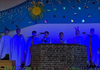 In Berghausen war am Sonntagnachmittag das halbe Dorf auf den Beinen, galt es doch, in der Mehrzweckhalle den Nachwuchs des Madrigalchores mit seinem Musical "Kwela, Kwela" zu erleben. Mit dem afrikanischen Märchen mit Pfiff aus der Feder von Andreas Schmittberger haben sich der Kinderchor unter der Leitung von Helene Heß und der "Zwergenchor" mit Elisa Lotz an der Spitze seit November 2022 beschäftigt und hinterließen mit ihrer Aufführung einen hervorragenden Eindruck. 33 Kinder übernahmen nicht nur den Gesang, sondern haben auch ihre Kostüme und Teile des Bühnenbildes selbst gebastelt. Man begegnete Elefanten, Zebras, Krokodilen und vielen anderen afrikanischen Tieren, die großes Talent bewiesen. Einige waren in ein einer Zweitrolle auch noch als Gespenster zu sehen und/ oder hatten auch noch eigens bei Annika Klos vom Musikverein Flöte spielen gelernt. Erstaunlich, was Kinder mit Ehrgeiz und Freude am gemeinsamen Tun unter Anleitung so alles leisten können. Respekt vor der Disziplin, dem Können und der Ausstrahlung der jungen Sänger:innen, die zum Teil auch noch Sprechrollen übernahmen, aber auch vor der Begeisterungsfähigkeit der Chorleiterinnen und dem Engagement der Betreuer und Eltern, die das ehrgeizige Projekt unterstützten. Alle zusammen lieferten ein begeisterndes Musical ab, das bei allen Generationen gut ankam, die den Saal bis ins hinterste Eck füllten. Da wurde nicht mit Applaus gespart und zum guten Schluss gab es auch noch jede Menge Lob- und Dankesworte. Zu Beginn hatte die Vorsitzende Nathalie Mang die Gäste begrüßt, zu denen auch Bürgermeister Christian Schwarz, Anke Schneider vom Solmser Sängerbund und Vertreter von Ortsbeirat und Kirchengemeinden gehörten. Sie führte auch in die Geschichte ein, die im afrikanischen Kwela Kwela spielt, wo große Trockenheit herrscht und die Tiere sich versammeln, um zu beratschlagen, was zu tun ist. Auswandern? Wasser kaufen? Oder doch lieber das Orakel befragen, dass zugegebenermaßen ein bisschen verrückt spielt? Das Orakel - ein alter Stiefel - rät zu graben und tatsächlich finden die Tiere Wasser. Nur Tschipo der Buschhase spielt lieber Flöte, kriegt aber auch kein Wasser ab. Zwei Mal stehlen Gespenster das Wasser, sind aber trotz Fallen nicht zu fassen. Und hier kommt dann Tschipo ins Spiel, der mit seinem Flötenspiel für einen Kompromiss sorgt: Der Hase macht Musik für und mit den Gespenstern und die klauen dafür kein Wasser mehr. Ganz nebenbei konnten die Kinder noch etwas über Toleranz, Miteinander, Teamgeist, eben alle Schlüsselkompetenzen, lernen, jede Menge Spaß haben und die Erfahrung des gemeinsamen Erfolgs machen. Das macht Lust auf mehr, stellt die Kinder in den Mittelpunkt der Dorfgemeinschaft und gibt dem Chorgesang eine Zukunft.