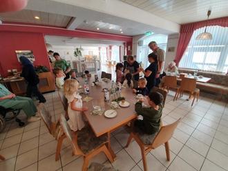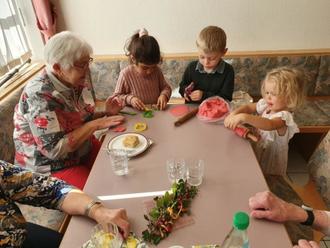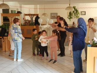 Im Vorfeld des Weltkindertages standen Kinder im Mittelpunkt der jüngsten Veranstaltung der beliebten "Aßlarer Gespräche" im Werner Best-Haus. Karsten Müller, Leiter der Kontakt- und Beratungsstelle hatte dazu eine Gruppe Kinder der Kita Kirchberg eingeladen, die mit Gruppenleiterin Hala Fansa und deren Kollegin Elina Schüler an den Backhausplatz gelaufen waren. Natürlich gab es für die 35 Gäste und die neun Kinder zwischen drei und fünf Jahren erst einmal eine Stärkung mit Kuchen und passenden Getränken. Dank ging an das Team der Aßlarer Gespräche für die gelungen Tischdekoration und die Hilfe beim Servieren, wobei auch Stadträtin Edith Muskat wie immer tatkräftig unterstützte. Nach der gemütlichen Runde waren alle gespannt, was die Kinder für die Erwachsenen an Programm mitgebracht hatten. Bei "Kopf, Schulter, Knie und Zeh" und "Tante Rita" kam mit Musikbegleitung Bewegung in den Saal und as Publikum sang und klatschte begeistert mit. Danach wurde nach Herzenslust an den Tischen das Anlegespiel "UNO" gespielt oder aus Knete schöne Figuren geformt. Alt und jung hatten dabei eine Menge Spaß und sich eine Menge zu erzählen. Dabei traf überraschend sogar ein Uropa seinen Urenkel. Mit einer gemeinsamen Zugabe der Lieder fand der abwechslungsreiche Nachmittag ein schönes Ende und jedes der Kinder bekam als kleines Dankeschön einen der Schlüsselanhänger, die Elena Sons in Handarbeit gefertigt hatte. So trafen die Mütter, die nach zwei Stunden ihren Nachwuchs abholten, auf eine muntere Schar, die miteinander eine Menge erlebt hatte und alle waren sicher: Das müssen wir unbedingt mal wieder machen!