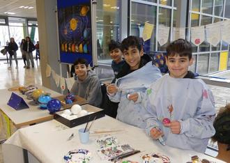 Die Ägyptenausstellung der Klassen 6M, die liebevoll gestaltete „Lapbooks“ zeigten, und das Modell des Planetensystems zweier Klassen 5M fanden ebenso großes Interesse wie die mit viel Liebe zum Detail erstellten Lesekisten einer Klasse 6G. Der Fachbereich Religion/Ethik zeigte Schülerarbeiten u.a. zu den Weltreligionen, während man bei den Spaniern und Franzosen über besondere Unterrichtsvorhaben und das Projekt „Erasmus plus“ informiert wurde. Im PC-Raum demonstrierten die Geographen, wie man vom Bild zur Karte gelangt; dort präsentierten auch die Informatiker mit interaktiven Angeboten ihre Unterrichtsinhalte. „English games“, Ludi Romanum, d.h. römische Spiele, und ein Quiz des Fachbereichs Spanisch boten weitere unterhaltsame Betätigungsmöglichkeiten.