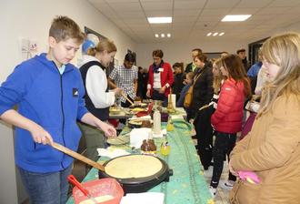 Das Ganztagsangebot zeigte an verschiedenen Ständen, was in den AGs geleistet wird. Für das leibliche Wohl war durch französische Crêpes, Waffeln der Lateiner, leckere Cocktails einer Intensivklasse, Muffins und „blutige“ Wackelpuddingspritzen der Schulsanitäts-AG sowie die Angebote des Bistros reichlich gesorgt.