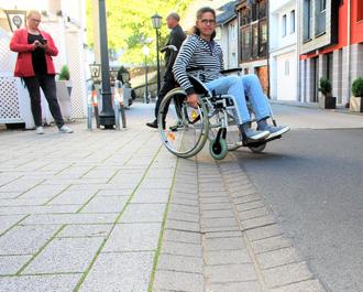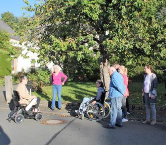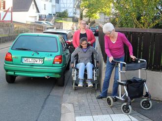 Mit einem Rollator, den HanneloreS pengler übernahm, und einem schweren Rollstuhl, in den sich Vania van der Schelde setzte, marschierte die Gruppe los und konnte einige Mängel entdecken. Unterwegs gesellte sich Jutta Bauer zu der Gruppe, die mit einem Elektromobil unterwegs ist und ein Lied von schwierigen Verkehrssituationen singen konnte. Auf schmalen Gehwegen mit abenteuerlicher Neigung ergibt sich eine Sturzgefahr gegen parkende Fahrzeuge, bei denen fremdes Eigentum, der Rollstuhl oder dessen Nutzer geschädigt werden können. Die Frage nach regelmäßiger Überwachung und Sanktionen an besonders gefährliche Stellen wurde laut. "Meine Aufgabe ist die Prävention, nicht die Bestrafung", warf Andreas Püchner ein. Das Ordnungsamt der Stadt Aßlar tut schon sehr viel, doch für Dauerüberwachung an allen Gefahrenpunkten brauchte man eine unbezahlbare Anzahl an Mitarbeitern. Gefragt sind hier wohl auch vor allem die Verkehrsteilnehmer, sich verantwortungsvoll mit ihren Fahrzeugen zu bewegen. "Es gibt zwar auch Planungsmängel beim Bau von Straßen, die man beheben könnte, aber gerade in den engen Straßen den alten Ortskerns muss man bedenken, dass sie in Zeiten gebaut wurden, als die Zahl der Autos noch wesentlich geringer war", gab Püchner zu bedenken. Die Entscheidungskraft der Verantwortlichen hängt hier oft von den Finanzen ab. Neben losen Steinen, zu hohen Bürgersteigen, schlecht passierbaren Gehsteigrinnen und mehr, kamen auch andere Themen auf, wie zum Beispiel die große rote Fläche am Eingang der Bachstraße von der Hauptstraße aus, die mancher als Fußgängerüberweg sieht. "Es handelt sich hierbei um die Visualisierung des Endes der 30-er Zone", informierte Püchner. Bei der Überquerung der Ampel wurden die Rot- und Grünphasen gestoppt und festgestellt, dass sich hier unbedingt etwas tun muss. Bei der Ampel am Rathaus, die an diesem Tag ausgefallen war, kam die Frage: "Müssen die Autofahrer dann trotzdem anhalten?" Das ist nicht der Fall - dieser Fußgängerüberweg gilt nur in Verbindung mit der Ampel. Zu den "Angsträumen" für Rollator- und Rollstuhlfahrer zählt auch ein Bahnhof. "Unser Bahnhof in Aßlar zählt zu den Barrierefreien", erzählte van der Schelde. Dies konnte schnell widerlegt werden - mit Rollator oder Rollstuhl kommt man nicht durch die Unterführung, auch nicht mit Hilfe. Fazit: Schon bei der Auftaktveranstaltung konnten eine Menge Mängel aufgetan werden, die es sicher auch in den Stadtteilen gibt. Vor allem kann so mancher Stolperstein auch einem gesunden und mobilen Verkehrsteilnehmer zum Verhängnis werden.