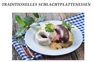 Ab 18:30 Uhr werden die Schlachtplatten ausgegeben und ab 19:30 Uhr spielt die Blasmusik Werdorf.