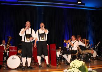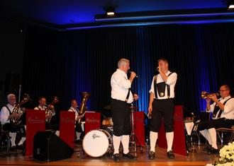 Die großen Blasmusikveranstaltungen in der Aßlarer Stadthalle füllen schon seit vielen Jahren im Herbst die Aßlarer Stadthalle. Zuerst waren es die "Fidelen Münchhäuser", die auch musikalische Freunde mitbrachten und jetzt sind es die "Egerländer 6", die nahtlos anschlossen. Dreh- und Angelpunkt der Erfolgsgeschichte sind Timo Groos, rühriger Schlagzeuger und Organisator beider Formationen, und Kersten Becker vom Kulturamt der Stadt, die als Vollblutmusiker für das traditionelle Blasmusikvergnügen verantwortlich zeichnen. Die "Egerländer 6" sind gerne auf Tour und spielten dabei auch im legendären Münchner Hofbräuhaus ihre beliebten böhmischen Melodien. Dabei lernten sie die "Obermüller Musikanten" kennen, die seit 2002 für die Organisation und Leitung der Musik im Münchner Hofbräuhaus inne haben. Die Kapelle, die 1886 von Michael Obermüller, seinen drei Söhnen und sieben musikbegeisterte Freunden gegründet wurde, hatte in der Folge trotz zweier Weltkriege Bestand und aus der Familie Obermüller gingen viele hoch angesehene Talente hervor, wie man auf der Internetseite dieser hervorragenden Formation lesen kann. Die Hauskapelle des Hofbräuhauses wird mit Maximilian Obermüller in der fünften Generation geleitet und ist in ihrer bayrischen Heimat der Inbegriff für Tradition und Qualität. Zurecht, wie die sechs jungen Männer am Samstagabend bei ihrer Premiere in Hessen bewiesen. Die Egerländer 6 gestalteten wie immer einen fulminanten Auftakt mit einem eineinhalbstündigen Ausflug in ihr reiches Repertoire, der von der Amsel-Polka über Egerland-Heimatland und der böhmischen Liebe bis hin zum Deutschmeister-Regimentsmarsch und dem Kufsteinlied reichte. Die exzellenten Musiker wussten bestens zu unterstreichen, dass die Musik aus Böhmen kommt und hatten "ihre" Aßlarer schon bei bester Laune, als Timo Groos die Freunde aus Bayern begrüßte, vorstellte und den Startschuss für einen Non Stopp - Gute Laune - Auftritt gab. Die sechs Musikanten mit Maximilian Obermüller an der Spitze machten dem ihnen voraus geeilten blendenden Ruf alle Ehre. Nicht umsonst wurde den Obermüller Musikanten 2011, im Jahr ihres 125-jährigen Jubiläums, der Volksmusikpreis der Hanns-Seidel-Stiftung verliehen. Aus dem entsprechend reichen Notenschatz der Familie, die mit Fug und Recht "Kapellmeister-Dynastie" genannt wird, konnte auch am Samstagabend geschöpft werden. Von alpenländischer Volksmusik über Wirtshausmusik bis hin zu aktuellen Kompositionen lassen die "Obermüller" keine Wünsche offen und hatten schnell Hofbräuhaus-Stimmung im Saal. Die Gäste sparten nicht mit Bravo-Rufen, klatschten und sangen lautstark mit. Als dann zur Krönung am Schluss auch noch beide Formationen gemeinsam aufspielten, Timo Groos und Christian Wahl bei den "rauschenden Birken", der "Vogelwiese" und "Bis bald auf Wiedersehn" den Gesangspart übernahmen und die Musiker "aus der Lameng" ihre Register übernahmen, war im Saal keiner mehr zu halten: Eine solch ausgelassene Stimmung erlebt man selten. Die Spielfreude der dreizehn Ausnahme-Musikanten, die mit ganzem Herzen Musik machen, steckte jeden an und sorgte für strahlende Gesichter auf beiden Seiten. Dass wer kann im nächsten Jahr wieder dabei ist, dürfte keine Frage sein.