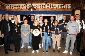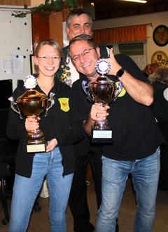 Das Schützencorps 1878 Klein-Altenstädten konnte sich am Samstagabend über ein volles Haus freuen. Zum Schützenball mit Proklamierung der neuen Majestäten und Siegerehrung des Ortspokalschießens waren eine Menge Gäste gekommen - zum Teil von weit her. So konnte der 1. Vorsitzende Rolf-Bernd Pfannkuchen den Ehrenvorsitzenden Harald Marscheck aus dem bayrischen Buching und eine Abordnung der Schützengilde aus Aßlars Partnerstadt Jüterbog um Vorsitzenden Gerald Kapplek begrüßen. Außerdem waren etliche Politiker anwesend, allen voran Bürgermeister Christian Schwarz. "An unserem Ortspokalschießen haben erneut 16 Mannschaften teilgenommen und ich freue mich heute Abend die Pokale übergeben zu können", so Pfannkuchen. Bei den Damen setzte sich in der Mannschaftswertung die Burschenschaft "Zur Linde 1" mit 311 Ringen an die Spitze, gefolgt vom Team 2 (277) und dem Backhausteam (262). Bei den Herren lag ebenfalls das Linden-Team 1 (308) vorne, das Backhausteam (291) wurde Zweiter und den dritten Platz belegten "Die Kietzeleu'" (291), die weniger Zehner geschossen hatten. Im Einzel der Damen holte sich Katrin Hilger (87) Platz eins gefolgt von Vanessa Keiner (80) und Janina Götz (79). Bei den Herren lag Marco Herr (86) vorne, Björn Krämer (84) schaffte den zweiten Platz und Dritter wurde Nino Marsteller (83). Die Ehrenscheibe konnte Nele Pfeiffer von der Burschenschaft "Zur Linde" mit nach Hause und bei den Männern war es Stefan Keiner vom Obst- und Gartenbauverein. "Ich danke allen für's mitmachen und das Kommen heute Abend, denn ohne die Vereine ginge es nicht", freute sich Christian Schwarz - auch über die Gäste aus Jüterbog. "Schön, dass trotz Corona die Vereine ihre Mitglieder wieder motivieren können, damit das gesellschaftliche Leben weiter gehen kann", so Schwarz, der zusammen mit der Dezernentin für das Ehrenamt, Edith Muskat, auch bei der Proklamation assistierte. Zunächst galt es für Jutta Diehl, Sebastian Erbe und Jugendkönig Jan Keiner (krank), ihre Amtsketten abzugeben und Erinnerungsnadeln entgegen zu nehmen. Wie immer wurden dann zuerst die Schützen geehrt, die dem Adler die Insignien "abgeschossen" hatten. Zepterkönig wurde Martin Pfaff, den Apfel holte sich Sven Urbasik und die Krone Malte Diehl. Mit dem 166. Schuss schoss sich Timothy in Amt und Würden des neuen Schützenkönigs. Anja Rußmann brachte mit dem 170. Schuss den Adler zu Fall. Neuer Jugendkönig ist Lenni Bourcarde, der zum ersten Mal dabei war - insgesamt hat der Verein derzeit acht Jugendliche. an. Großen Beifall bekamen Jutta Diehl und Rolf-Bernd Pfannkuchen, die beim Kreiskönigsschießen in Nauborn siegreich waren. "Wir sind stolz, dass wir erneut das Kreiskönigspaar stellen", so der 2. Vorsitzende Jens Diehl Lins. Traditionell eröffnete das neue Königspaar mit der "Schützenliesel" den Tanz und der Abend ging in den gemütlichen Teil über.