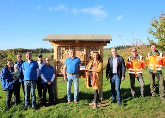 Der NABU-Ortsverband Aßlar um Vorsitzenden Oliver Menz hat jetzt mit Unterstützung durch die LEADER-Region Lahn-Dill-Wetzlar und die Stadt Aßlar fünf Insektenhotels aufgestellt. "Streuobstwiesen, die seit Jahrhunderten das Landschaftsbild prägten, waren völlig aus dem Fokus geraten, obwohl sie unserer Heimat ein Gesicht geben und nicht nur schön aussehen, sondern auch von hohem ökologischen Wert sind", so Menz, der am Standort an der Nordtangente neben NABU-Mitgliedern besonders Mercedes Bindhardt, LEADER-Regionalmanagerin, Bürgermeister Christian Schwarz sowie Markus Löll, Leiter des städtischen Betriebshofs und dessen Mitarbeiter Axel Weller begrüßte. "Das Land hat die Streuobstwiesen in unserer Kulturlandschaft deshalb unter besonderen Schutz gestellt und die Stadt Aßlar hat auf den gesetzlich fest gelegten Ausgleichsflächen entsprechende Bäume gepflanzt", so Menz weiter. Damit neben der Pflege der Bäume auch deren Bestäubung durch Insekten gesichert ist, hat der NABU die fünf großen Insektenwände auf den Weg gebracht. Da die Kosten sich auf 7000 Euro belaufen, hatte der Vorstand bereits vor einem Jahr bei der LEADER-Region um Förderung angefragt, die mit 5500 Euro auch gewährt wurde. "Da hier auch die Wertschöpfung in der Region gefördert wird, haben wir einen Werdorfer Schreiner beauftragt, der hier große Handwerkskunst präsentiert," ergänzte Menz und dankte auch der Stadt Aßlar für die Unterstützung, insbesondere Revierleiterin Nina Bellof als Bindeglied zum Bauhof. "Ich habe mich sehr über die gute Kooperation gefreut und danke natürlich auch meinen Vereinskollegen für ihr Engagement." Da die fünf Standorte an Wegen liegen, die von Naherholungssuchenden sehr frequentiert sind, erhofft sich Menz Nachahmer als positiven Begleiteffekt. Möglicherweise sollen Schautafeln folgen. "Ich danke unserem rührigen NABU-Ortsverband, der den Aßlarern wichtige Themen nahe bringt, die wie zum Beispiel die Verwertung von heimischen Äpfeln zu Apfelsaft durch Marthas mobiler Presse ebenfalls LEADER-gefördert ist", so Christian Schwarz. Natur und Insekten seien wichtig und die Stadt Aßlar wurde in diesem Jahr auch schon von der EAM mit einem Insektenhotel beschenkt, das von der Lebenshilfe gebaut wurde. "Ich bin selbst Mitglied des LEADER-Entscheidungsgremiums und weiß, wie viele Förderanträge für tolle Projekte im Lahn-Dill-Kreis gestellt werden", so Schwarz weiter, dankte für den Zuschlag und auch dem NABU für seinen finanziellen Anteil. "Für uns als Kommune war es selbstverständlich passende Standorte zur Verfügung zu stellen und bei der Aufstellung zu unterstützen."