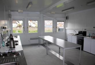 Wo früher die Mühle der Familie Hartmann stand, hat die Stadt Aßlar jetzt für eine Wohnanlage gesorgt, in der Flüchtlinge aus der Ukraine untergebracht werden können. "Wir haben frühzeitig reagiert, 60 Wohncontainer geordert und auch noch Flurmodule bekommen", erzählt Bürgermeister Christian Schwarz. Ohne diese hätte man Planen zwischen die Containerreihen spannen müssen. "Ich bin stolz auf alle Beteiligten, die hier innerhalb von sechs Wochen für menschenwürdige Unterkünfte gesorgt haben", freut er sich über das gute Team vom Fachdienst Sicherheit und Ordnung, der in der Aßlarer Feuerwehr und den Bediensteten des Rathauses große Unterstützung findet. "Alle haben angepackt, Möbel aufgebaut, Willkommenspakete mit Bettwäsche, Handtüchern, Gläsern, Schneidbrett und mehr gepackt und viele ehrenamtliche Stunden investiert, um für die Flüchtlinge eine Basis für ein gutes Miteinander zu schaffen, in der man sich wohl fühlen kann," so der Bürgermeister. Es gibt sogar eine Adresse - "Mühlweg 30" - für das zeitweilige Zuhause. "Es sind zweckmäßige Unterkünfte entstanden, kein Luxus, aber es gibt Waschmaschinen und Trockner, fünf Toiletten pro Geschlecht für 30 Personen, sechs Kochstellen in der Gemeinschaftsküche, Mikrowellen, Wasserkocher, Kaffeemaschinen, Kühlschränke und natürlich auch Gemeinschaftsduschen", erläutert Michael Pichl, Fachbereichsleiter Brand-, Zivil- und Katastrophenschutz. Um Energie zu sparen funktioniert das Flurlicht mit Bewegungsmeldern und Schalter sorgen zum Beispiel in der Küche dafür, dass nach einer Stunde der Strom automatisch abgeschaltet wird, was natürlich auch für den Brandschutz wichtig ist. Die Anlage ist in zwei Bereiche à 30 Personen eingeteilt und soll vornehmlich Familien zur Verfügung stehen. Es gibt Zimmer für zwei und vier Personen plus zehn Kinderbetten. "Wir sind auf großes Entgegenkommen bei der Beschaffung von Möbeln und Elektrogeräten gestoßen und auch die Spendenbereitschaft der Bevölkerung mit Bettwäsche, Handtüchern und mehr ist gleich bleibend hoch", lobt Schwarz. Sechs Wochen vom Mietvertrag über Aufbau und Erstellung der Infrastruktur bis zur Großaktion zur Bestückung, waren eine Glanzleistung. Dank geht hier auch an die Stadtverordnetenversammlung, die sofort einstimmig die zunächst angedachte Containerzahl verdoppelte. Ergänzend kommen noch vier Container dazu, die für Sozialarbeit oder Arztsprechstunden und Ähnliches genutzt werden können. Die Kosten für die Miete, die über 24 Monate läuft und sich auf rund 465000 Euro beläuft, werden zum größten Teil (Ziel ist komplett) durch die Kompensation für die Aufnahme von Geflüchteten vom Land Hessen übernommen. "Auch die Firmen Gießener Container Modulbau und Kiloutou Arbeitsbühnen haben zügig gearbeitet", so der Bürgermeister, der sich sehr zufrieden zeigt. In dieser Woche kommen die ersten 30 Flüchtlinge an. "Nach dem aktuellen Verteilungsschlüssel müssen wir 300 Menschen aufnehmen, von denen ca. 200 schon privat oder in angemieteten Wohnungen untergebracht sind", resümiert Schwarz. "Wir haben uns für die Container entschieden, weil wir die Turnhallen und Dorfgemeinschaftshäuser solange wie möglich für die Bevölkerung zur Verfügung haben wollen, die durch die Corona-Pandemie schon genug auf Sport und andere soziale Kontakte verzichten musste", so Pichl. "Wir wissen nicht, was noch auf uns zu kommt und müssen spontan reagieren", ergänzt Schwarz. Wöchentlich kommen die neuen Zuweisungen an Schutzsuchenden und es sind derzeit weit mehr als 2015 bei der ersten Flüchtlingskrise. "Es sind Menschen, die vor Gewalt fliehen und bei uns freundlich und mit offenen Herzen empfangen werden, wofür ich allen Aßlarern danke", so der Bürgermeister. "Und eigentlich wünscht man sich, dass dies alles gar nicht nötig wäre und diese Menschen zu Hause in ihrem Heimatland in Frieden leben könnten."