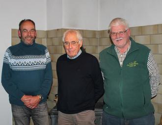 Josef Netsch (re) und sein Stellvertreter Carsten Wellstein (li) ehrten Heinz Gerhard für 60-jährige Mitgliedschaft.