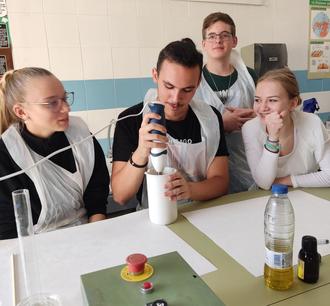 Ein weiterer Workshop im Labor diente der Herstellung von Naturkosmetik wie Rosmarinalkohol, Lippenbalsam, Aloe-Gel und Creme. Dabei lernten die deutsch-spanischen Tandems zahlreiche Eigenschaften der Pflanzen kennen und arbeiteten Präsentationen zum Thema aus.