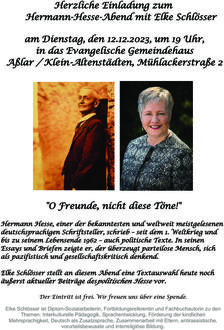 Herzliche Einladung zum Hermann-Hesse-Abend mit Elke Schlösser