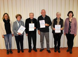 Nathalie Mag (li) und Verena Reeh (re) mit den Jubilaren v.l. Christa Marth, Reinhold Becker, Bolko Fabian und Lydia Köhler.
