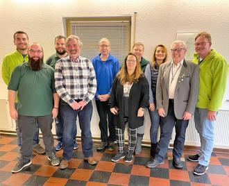 Geehrte und Vorstand v.l.: Philipp Greilich, Timo Clemens, Marcel Hedderich, Joachim Schneider, Klaus Frech, Sylvia Liebig, Susanne Koob, Claudia Baumhakl, Armin Krämer und Andreas Koob. Die Geehrten Günther Griesheimer und Michael Zell waren leider verhindert.