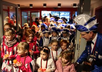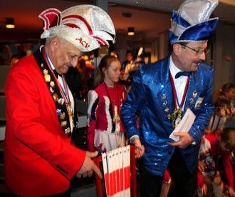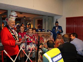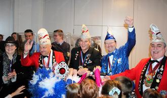 Mit einem Großaufgebot an Garden, Elferrätern und allen möglichen Vertretern der beiden Aßlarer Karnevalsvereinen, wurde am Donnerstag das Aßlarer Rathaus erstürmt, um bis zum Aschermittwoch alle Macht über das Wohl und Wehe der Einwohner an sich zu reißen. Ihre große Konfetti-Kanone hatten die Narren zwar zu Hause gelassen, doch auch ohne dieses schwere Geschütz hatten die Narren von ACV und NSB in ihrer Übermacht leichtes Spiel. Bürgermeister Christian Schwarz, Stadtverordnetenvorsteherin Katharina Schäfer sowie Magistratsvertreter und Rathausmitarbeiter hatten sich - geschützt von den Abwehrschildern des Ordnungsamtes - hinter einem Scherengitter verschanzt und der Bürgermeister lieferte sich ein Rede-Duell mit Aßlars Sitzungspräsident Uwe Lutz und Thomas Heinz, dem Vorsitzenden der Närrischen Spatzen. Allen gereimten Drohungen zum Trotz, weigerte sich das Stadtoberhaupt, den Schlüssel zur Rathaustür heraus zu geben. Bis dann fluchs die Barrikade zur Seite geschoben wurde und es hieß „Alle Narren jetzt herbei - aus allen Waffen Feuer frei!“ Und schon stob das närrische Fußvolk in das Stadthallen-Foyer, bunte Bälle flogen hin und her, Konfetti-Kanonen tauchten alles in buntes Geflitter und im Nu waren die wenigen Stadtvertreter in die Enge getrieben, schwenkten die weiße Fahne und ergaben sich dem närrischen Treiben ohne große Gegenwehr. „Dann lasst sie halt ins Rathaus rein - was sein muss, dass muss halt sein!“ traten sie den Rückzug an und bei Sekt und Häppchen wurde Frieden geschlossen.