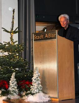Am Freitagnachmittag erlebten Aßlars Bürger 60+ eine sehr gelungene adventliche Feier in der Stadthalle, zu der Bürgermeister Christian Schwarz nicht nur begrüßte, sondern auch spontan die Moderation übernahm. Die Stadtverordnetenvorsteherin Katharina Schäfer, war kurzfristig erkrankt. „Ich werde ihr die Genesungswünsche von Ihnen allen überbringen, damit es ihr schnell wieder gut geht“, so Schwarz, der seine Aufgabe bestens meisterte. „Es ist unheimlich schön, so viele Gäste hier zu sehen, die sich gut verstehen.“ Unter ihnen begrüßte er auch zahlreiche Vertreter der städtischen Gremien und dankte dem Team aus der Verwaltung, dass die Bewirtung übernahm. Besonderer Dank ging an Kersten Becker vom Kulturamt, der wieder ein schönes Programm vorbereitet hatte. Den Auftakt machte seine Kollegin Virginia Busch, die mit ihrem Mann Frank musikalisch für einen stimmungsvollen Auftakt sorgte. „Mary did you know?“ und „Vor deiner Krippe stehe ich“ kamen sehr gut an und auch Steffen Bickel und Ingo Hertweck von den „Egerländer 6“ bekamen für den Vortrag von „White Christmas“ und „Die Rose“ mit Trompete und Posaune viel Applaus. „Weihnachten steht nicht für Geschenke, sondern für Bescheidenheit, Hoffnung, Neuanfang, Menschlichkeit, Mitgefühl und Liebe und gibt uns die Kraft zu erkennen, wie wichtig Gemeinschaft und Zusammenhalt sind“, so Schwarz und erinnerte an den Weihnachtsmarkt in Aßlar und den Adventszauber in Oberlemp, die das schon erleben ließen. „Nutzen sie auch die Gelegenheit in Werdorf und Berghausen sich miteinander wohl zu fühlen“, rief er auf und gab in einem Vortrag Anlass zum Schmunzeln, der sich mit der Vorstellung beschäftigte, das Christkind würde vom Finanzamt einer Steuerprüfung unterzogen. Kersten Becker, Virginia und Frank Busch leiteten mit dem gemeinsamen Weihnachtslied „Leise rieselt der Schnee“ in die Kaffeepause über, die für angeregte Gespräche genutzt wurde. Anschließend läuteten die Bläser mit einem Weihnachtslieder-Medley und „Amazing Grace“ die zweite Hälfte des Nachmittags ein, in der zwei Aßlarer sehr verschiedener Generationen für Highlights sorgten. Jannes Leonard Diener hatte mit seinen neun Jahren den Mut, sich mit seiner Gitarre ganz alleine auf die Bühne zu setzen und das Publikum mit Rolf Zuckowskis „Weihnachtsbäckerei“, dem „Stern über Bethlehem“ und „Lasst uns froh und munter sein“ zu erfreuen. Der ganze Saal sang mit, der junge Mann ließ sich dabei nicht aus der Ruhe bringen und spielte sich in die Herzen aller. Mut gehört auch dazu, sich mit 87 vor so ein großes Publikum zu stellen und ein recht langes heiteres Gedicht vorzutragen. Willi Leib hatte sich „Lametta“ von Hubert Kersting ausgesucht, bei dem eine Familie zu Heiligabend am Sonntag mangels Lametta Sauerkraut mittels Silberbronze umfunktioniert und eine Woche später - das Sauerkraut ging beim Einkauf vergessen - das Ganze wieder rückgängig macht. Die Folgen bei den Gästen nach dem Verzehr, machten beim Publikum das „Kopfkino“ flott: Welch Vorstellung, wenn beim niesen Silbersterne aus der Nase fliegen! Pfarrer Marcus Brenzinger hatte zuvor in einer kurzen Andacht daran erinnert, dass Advent ganz andere Schwerpunkte als Hektik, Essen, Trinken und Geschenke hat. „Gott kommt, bewegt uns, hat uns was zu sagen und sind wir bereit dafür? Nutzen wir die Zeit, uns vorzubereiten - der heutige Nachmittag hilft uns dabei.“ Mit „Tausendfach besungen“ und „You raise me up“ setzten Virginia und Frank Busch einen stimmungsvollen Schlusspunkt für einen Nachmittag, der ein sehr gutes Beispiel für Gemeinschaft in der Vorweihnachtszeit war. „Wir haben gemeinsam eine unvergessliche Zeit erlebt, die uns bestimmt noch einige Tage bewegt“, so Christian Schwarz zum Abschluss und dankte noch einmal allen Akteuren, bevor alle gemeinsam mit „Stille Nacht, Heilige Nacht“ den sehr gelungenen Nachmittag beendeten.