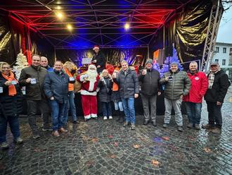 Im Anschluss stießen die Vereinsvertretenden gemeinsam mit dem Bürgermeister bei heißen Getränken auf den Weihnachtsmarkt an und hielten die Eröffnung mit einem Gruppenfoto fest.