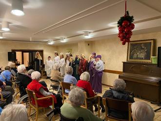 Zum Abschluss des Jubiläumsjahres gab es im Seniorenzentrum "Schönbachtal" einen kleinen Weihnachtsmarkt, zu dem natürlich auch die Bevölkerung eingeladen war. Ein paar Aussteller zeigten an ihren Ständen schöne Handwerkskunst, die von Holz- und Kreativdekorationen aus Gießpulver, über selbst Getöpfertes, Häkel- und Strickarbeiten und Bobbelwolle, bis hin zu Scentsylampen und 3 D-Druckschneeflocken reichten. Natürlich waren auch die Bewohner wieder fleißig gewesen. Wer nach dem Bummel durch die Räume im Erdgeschoss des betreuten Wohnens Hunger hatte, konnte sich an Grillwurst, Reibekuchen mit Apfelmus, süßen Waffeln und Punsch gütlich tun. Zum Schluss zog es alle in den Gemeinschaftsraum, wo das Krippenspiel der evangelischen Kirchengemeinde Werdorf aufgeführt wurde. Am guten Schluss war es allen so recht weihnachtlich ums Herz und die Kinder wurden mit viel Applaus bedacht.