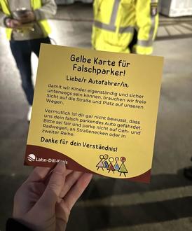 Ausgestattet mit Warnwesten überreichten die Kinder den Autofahrern direkt vor Ort die gelben Karten. Sie wiesen darauf hin, dass falsch parkende Fahrzeuge an Gehwegen, Radwegen, an Straßenecken oder in zweiter Reihe eine Gefahr für sie als Fußgängerinnen und Fußgänger darstellen können. Die überwiegende Zahl der betroffenen Fahrerinnen und Fahrer zeigte Verständnis, nur vereinzelt kam es zu Diskussionen.