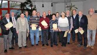 Die Rentnervereinigung Pfeiffer traf sich am Dienstag zur ihrer Jahreshauptversammlung in den Aßlarer Ratsstuben, wo der Vorsitzende Rainer Apfelstadt knapp 40 Teilnehmer begrüßte. Einer der Höhepunkt der Tagesordnung war die Ehrung langjähriger Mitglieder. Für zehnjährige Mitgliedschaft standen Sigrid-Brigitte Cieplik, Helmut Kleinblotekamp, Eberhard Müller, Erich Bachmann, Ernst-Peter Biehl und Karl-Heinz Hofmann zur Ehrung an. Seit 20 Jahren stehen Helmut Bartel, Jürgen Baumert, Brigitte Schmidt, Horst Schmidt, Valentin Rochus, Emil Weil, Gitta Schneider, Helga Vogt und Heinz-Walter Scherer in den Reihen der RVP. Waltraud Botschar, Elfriede Lang und Jürgen Keiner gehören seit 25 Jahren dazu und Willi Koob und Gottfried Ortner können auf 30 Jahre zurück blicken. Bei den Wahlen wurden Rainer Apfelstedt und Schriftführerin Bärbel Wilke-Klaudy wieder gewählt. Wolfgang Schleifer ist neu als Beisitzer. Außerdem gehören dem Vorstand der 2. Vorsitzende Edgar Keller, 1. Kassierer Lothar Brückmann, 2. Kassiererin Anneli Büttner, die Reiseorganisatorinnen Margit Ebeling und Marion Kraft sowie Beisitzerin Waltraud Botschar an. Dem Kassenbericht folgte die Entlastung des Vorstands. Im Jahresrückblick wurde unter den Veranstaltungen und Fahrten die 6-Tagefahrt nach Oberaudorf ins Sporthotel Wilder Kaiser mit den Tagesausflügen genannt. In diesem Jahr führt die 6 Tage-Fahrt vom 26. Juni bis 1. Juli nach Kropp in Schleswig-Holstein, mit Quartier im Hotel Wikingerhof und Tagesausflügen rund um die Schlei und Schleswig, nach Husum mit Friedrichsstadt, nach Hamburg mit Hafenrundfahrt einschließlich Elbphilharmonie sowie Flensburg und Glücksburg. Die Tagesfahrt geht nach Steinfurth, Münzenberg und Seligenstadt und die Kaffeefahrt nach Bad Orb. Das Grillfest findet wieder an der Leuner Grillhütte statt. Das Oktoberfest mit Musik steigt in der Mehrzweckhalle in Berghausen. Außerdem gibt es noch eine Fahrt zum Edersee, Schloss Waldeck und Bad Wildungen. Zum Jahresabschluss gibt es am 5. Dezember die Weihnachtsfeier in der Stadthalle Aßlar.