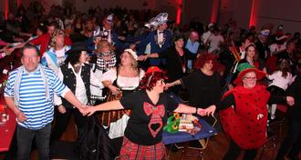 Die Närrische Sitzung des Aßlarer Carnevalvereins brachte am Samstagabend die dortige Stadthalle zum Beben. Das bunt kostümierte Publikum setzte das diesjährige Kampagnenmotto „Ist die Welt auch trüb und grau, Fasching feiert der ACV“ eins zu eins in die Tat um und war von Anfang an mit Elan dabei. Der ACV hatte aber auch Allerhand zu bieten. Toller Garde- und Showtanz mit viel Nachwuchs wechselte mit stimmgewaltigen Gesangs und Musikgruppen und auch in der Bütt war was los. Nach dem Einmarsch des Elferrats um Sitzungspräsident Uwe Lutz, dem sich dieses Mal auch zwei Mitglieder des Damenkomitees angeschlossen hatten, fiel der fulminante Startschuss mit der ACV-Garde, dem Schlag auf Schlag die Highlight folgten. Ganz neu dabei die Minis und die Minigarde, die viel Talent zeigten. Tanzmariechen Katharina Zipp präsentierte, was heraus kommen kann, wenn man dazu Ehrgeiz hat und fleißig trainiert. Die Jugendshowtanzgruppe riss mit ihrer Zeitreise von den 1970-er bis 90-er Jahren alle mit und auch die Feier-Girls- Showtanz der Garde reihte sich „burlesque“ ins bunte Bild. Mit „Barbie“ hatten die Hoawwerbällcher zusammen mit der Showtanzgruppe ein ewig junges Thema aufgegriffen und kamen hervorragend an. Die Royal Trampel-Bumser, bei denen ACV-Ehrenpräsident Michael Steih auf die Pauke haut, hatten leichtes Spiel - die „Hessebuwe“ trieben mit Handkäs‘ und mehr die Stimmung auf die Spitze. Die gelang auch den Bachstrooße-Boys des ACV, die nicht nur „Rippchen mit Kraut“ im Gepäck hatten, sondern sich unter anderem auch zu ihrer Heimat-„Stadt mit A“ bekannten und den Saal rockten. Jürgen Scheiter spielt seine Rolle als „Eisbrecher“ in der Bütt bestens. Klaus Bömke, als Feuerwehrmann Kresse aus dem Kölner Fasching bekannt, brachte mit Tatü-Tata so manchen zündenden Lacher an. Vom NKB Büblingshausen gesellten sich Manuel Weiß und Manuel Krüger dazu, die unter der Überschrift „Himmelfahrtskommando“ AfDnee sagten und viel Beifall bekamen. Eine echte Schau waren die Besucher aus Aßlars Partnerstadt Waldbröl, die ihre Karnevalsgesellschaft aufs Beste mit atemberaubendem Gardetanz und Kinderprinzessin Paula präsentierten, die mit „Dorfkinder“ alle zum mit singen brachte. Beim Finale tanzte das Publikum auf den Tischen und feierte noch einmal die Akteure zur Musik von Marco Rieger, der zusammen mit Bachstrooße-Boy Christoph Demant „Hey Aßler, du Stodt o de Dill“ anstimmte und gemeinsam der Startschuss in die After-Show-Party gegeben wurde.