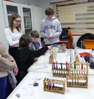 Die Jahrgangsstufen 9 und 10 hatten sich indessen naturwissenschaftlichen Themen gewidmet. Mit dem „kleinen Mathematikum“ der Schule wurde die Verbindung zum großen Kooperationspartner aus Gießen gesucht und gefunden. Denn seit einem Jahr hat die JGS einen bestehenden Kooperationsvertrag mit dem Mathematikum unter der Leitung von Prof. Dr. Albrecht Beutelspacher und ist damit die bisher einzige Schule, die sich auf eine solche Zusammenarbeit berufen kann. Daher war es für die Initiatoren des mathematischen Mitmachmuseums selbstverständlich, anschauliche Exponate zur Verfügung zu stellen. Und so kamen junge und junggebliebene Knobelfreunde voll und ganz auf ihre Kosten. Das besondere Angebot richtete sich auch an die zukünftigen Gutenbergschüler, die aus den benachbarten Grundschulen gekommen waren. Die JGS-Schulleitung informierte über das Profil einer KulturSchule und war somit für alle Eltern ein kompetenter Ansprechpartner.