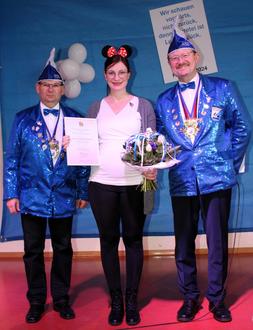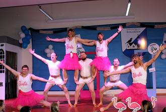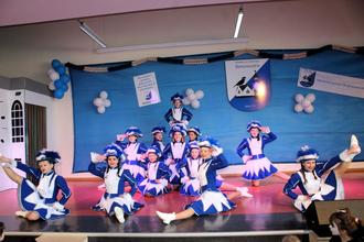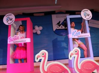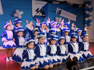 Die Kinder-Faschingsparty der Närrischen Spatzen Berghausen am Faschingsdienstag, war eine rundum gelungene Sache. Das rund einstündige Programm brachte die Mehrzweckhalle ebenso zum Beben wie die Sitzung für die Erwachsenen und konnte eines dick unterstreichen: Der Nachwuchs sitzt hier nicht nur in den Startlöchern - die Kinder haben sich von den Großen schon einiges abgeguckt und machen große Hoffnung auf eine glänzende Zukunft für den Spatzenfasching. Schon beim Einmarsch des Dreierrat samt Garden machte das närrische Volk begeistert mit und sparte nicht mit Applaus. Die Mädchen der kleinen und mittleren Garde präsentierten noch einmal ihre Tänze und in den Reihen im Saal freute sich schon so manche kleine Maus, dass sie auch bald dabei sein kann. Das Highlight in diesem Rahmen war die Auszeichnung von Trainerin Victoria Zimmermann mit der Verdienstnadel in Bronze des Bundes Deutscher Karneval für fünf Jahre Tätigkeit. „Victoria lässt sich durch nichts von dem Training mit den Funken abhalten“, so Thomas Heinz, Vorsitzender der Närrischen Spatzen, der Urkunde und Nadel zusammen mit Jens Podstara überreichte. Bei den gespielten Witzen zeigte sich so manches Talent. Ob im Bus, in der Schule oder im Café - die jungen Spatzen sind schon ganz schön flügge. Auch die Mülltonnen-Einlage zu „Manamana“ und zum guten Schluss noch die kleine Hitparade mit Umpalumpa und mehr kamen gut an. Wie das später bei den Großen auf der Bühne aussieht, zeigten die Trampelspatzen. Das Männerballett der NSB hatte in diesem Jahr das Thema „Barbie und Ken“ aufgegriffen und ließ es an gekonnter Choreographie und Akrobatik nicht fehlen. Mit minutenlangem Bonbonregen schloss das Programm und ging in den gemütlichen Teil bei Kaffee, Kuchen und Pommes über. Auch hier gilt: Bis zur nächsten Kampagne ein dreifach donnerndes Helau!